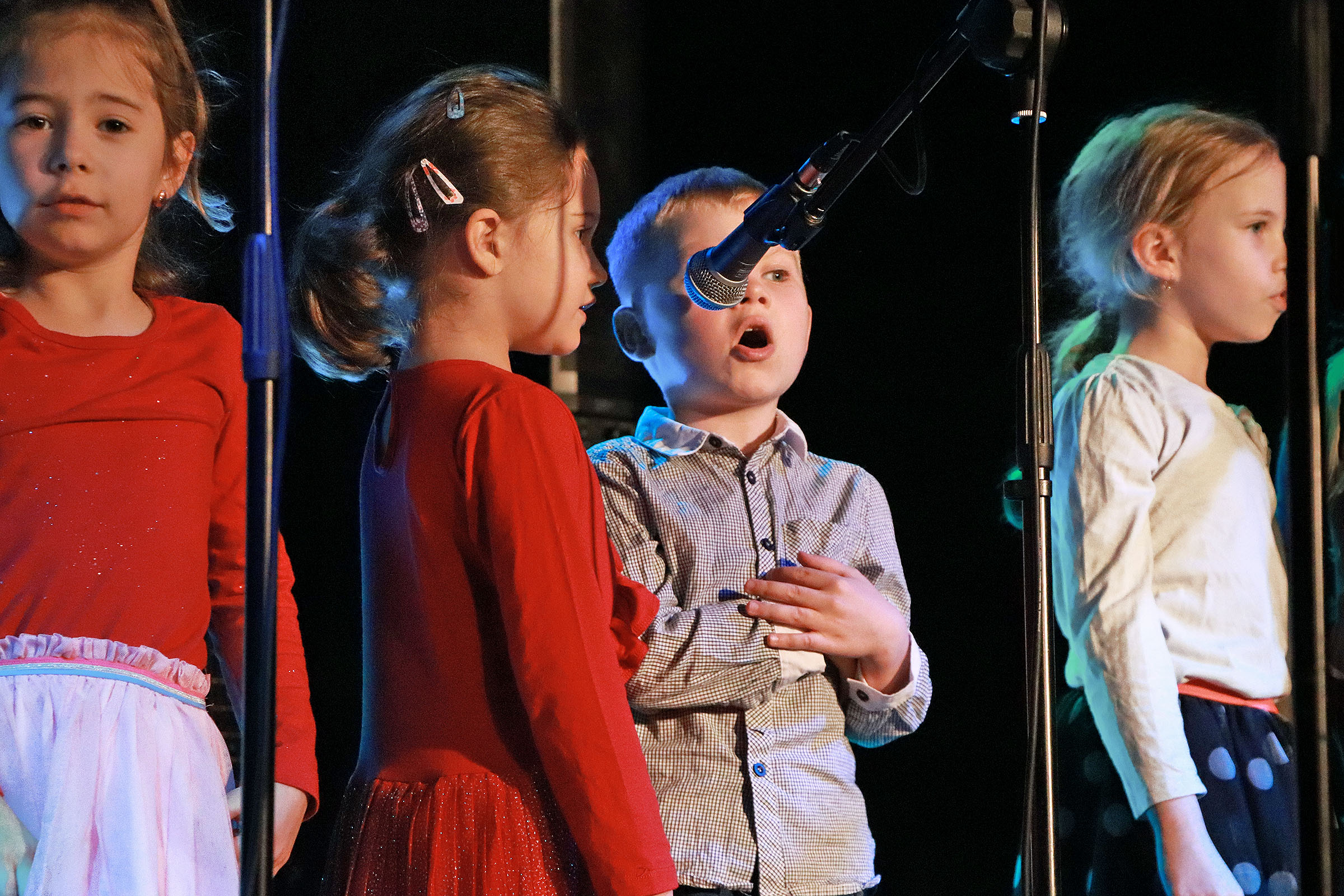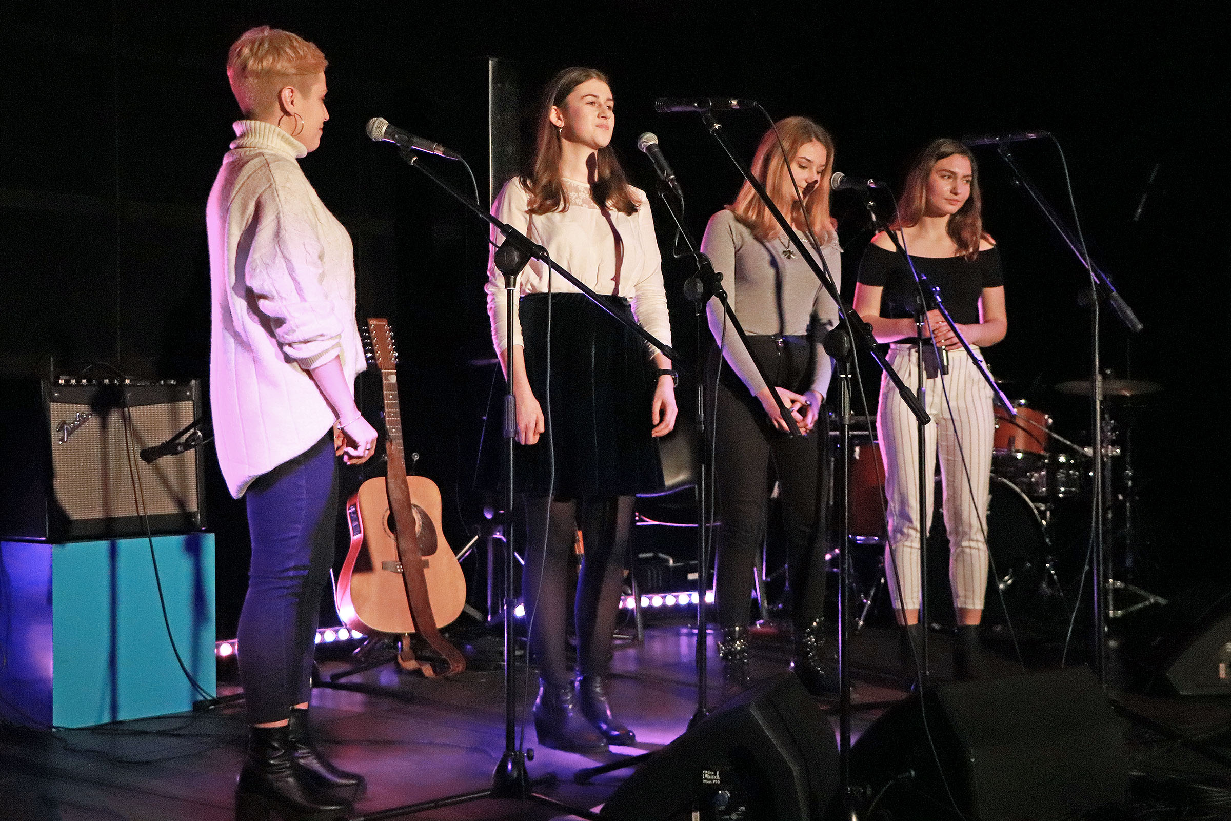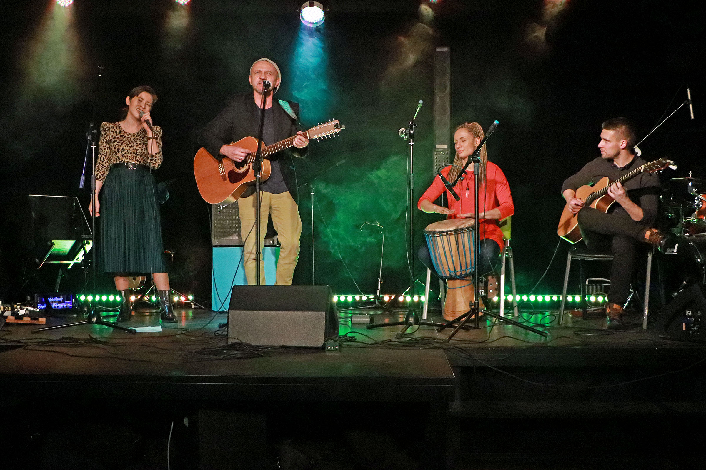 Podczas Mikołajkowych Spotkań Muzycznych zaprezentowały się wszystkie grupy muzyczne, działające w Dzielnicowym Domu Kultury "Bronowice" oraz w naszych dwóch filiach. Na scenie gościliśmy zarówno adeptów sztuki gry na gitarze, uczestników warsztatów wokalnych, bębniarskich i gry na ukulele, a także zespoły muzyczne, szlifujące swoje umiejętności podczas zajęć Tworzymy BAND. Dodatkowo w specjalnym, wspólnie wykonanym utworze swoimi umiejętnościami pochwalili się także wszyscy nasi instruktorzy, łącząc: wokal, dwie gitary i djembe.