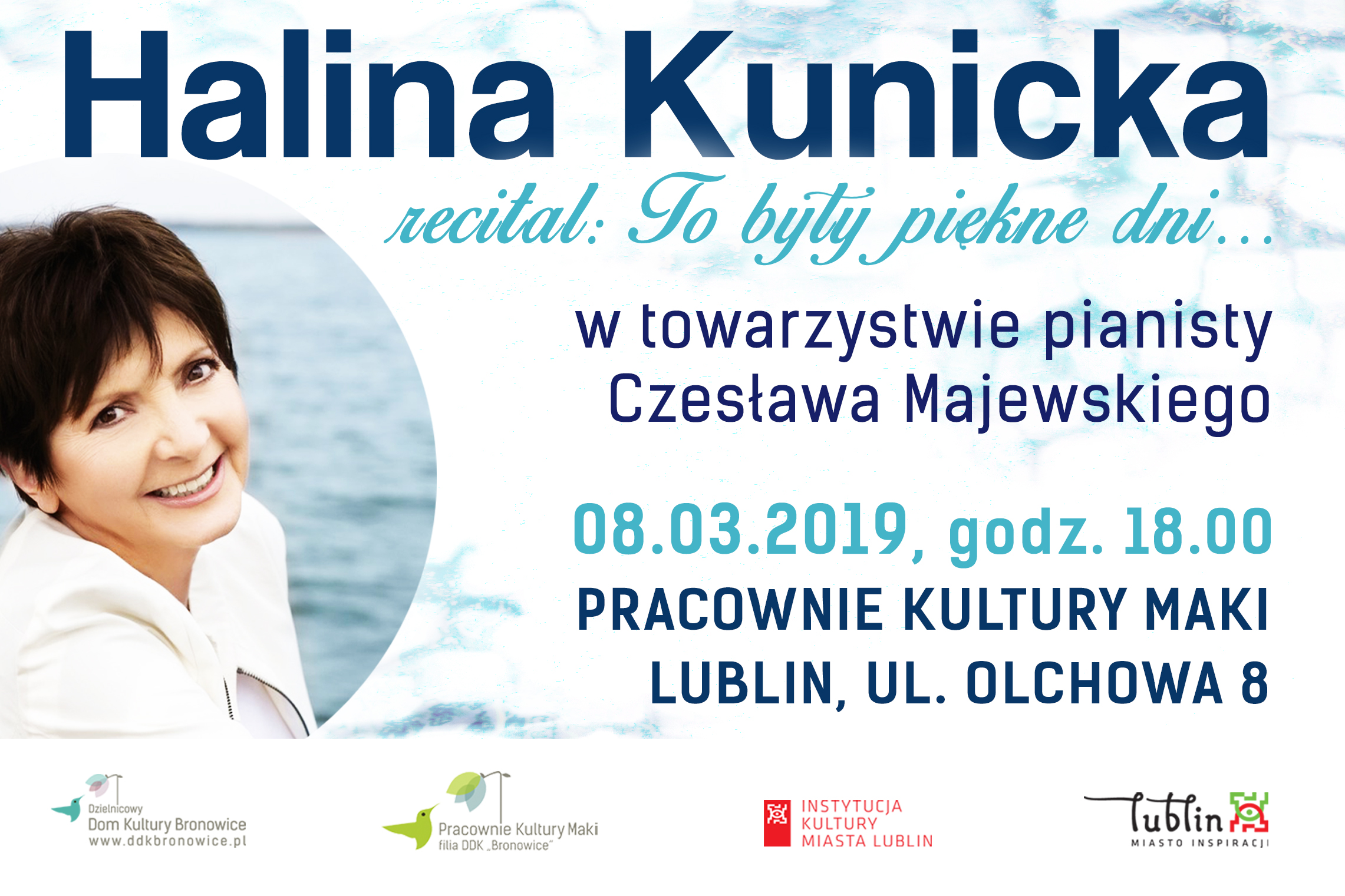 W piątek, 8 marca 2019 roku o godzinie 18:00, w Pracowniach Kultury Maki zaprezentujemy przepiękny i sentymentalny recital, wypełniony piosenkami w wykonaniu HALINY KUNICKIEJ, przy akompaniamencie wybitnego pianisty CZESŁAWA MAJEWSKIEGO – recital "To były piękne dni..."! Ponadczasowe piosenki, wzruszające doznania, muzyczna podróż z takimi przebojami jak: „To były piękne dni”, „Niech no tylko zakwitną jabłonie", „Orkiestry dęte”, „Upływa szybko życie” „Czumbalalajka”, „Od nocy do nocy”. Halina ...