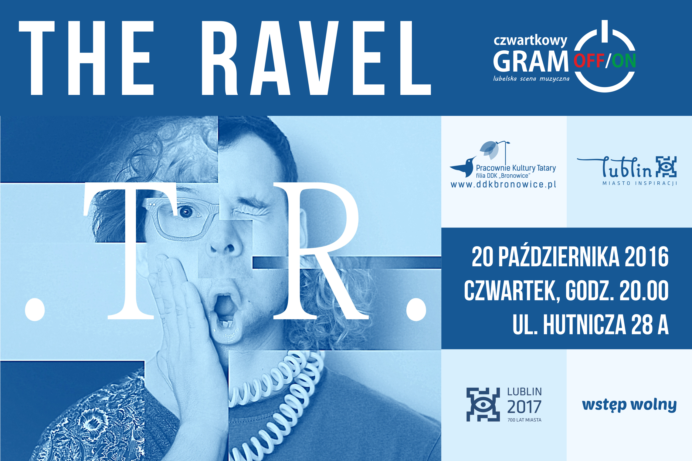 Pracownie Kultury Tatary z niebywałą radością zapraszają Państwa na kolejny koncert z cyklu "Czwartkowy Gram-OFF/ON", w ramach którego będziemy zapraszać naszych, lubelskich artystów, tworzących wartą wypromowania muzykę! W czwartek, 20 października 2016 r., o godzinie 20:00 zaprezentuje się zespół The Ravel! The Ravel to zespół muzyczny ludzi pełnych pasji i zapału do współtworzenia swojej muzycznej historii. Działa przy Centrum Kultury w Łęcznej. Muzykę i teksty piszą sami, a inspiruje ich ży...