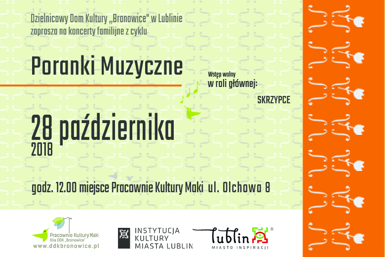 Poranki Muzyczne to familijne koncerty edukacyjne i forma obcowania z muzyką klasyczną dla widzów w każdym wieku, gdyż głęboko wierzymy, że na kontakt z wartościową muzyką nigdy nie jest za wcześnie! Podczas naszych niedzielnych spotkań, młodzi melomani wraz z rodzicami i dziadkami mają możliwość słuchania muzyki, a także aktywnego udziału w koncercie poprzez grę na instrumentach i wspólny śpiew. Spotkania przybliżają dzieciom świat dźwięków i prezentują bogate instrumentarium. Jest to projekt, ...