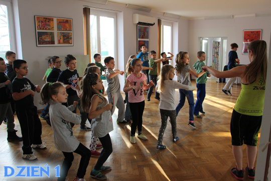 Dzień 1 - Zumba Kids, Kącik z Książką, gry i zabawy integracyjne, Kącik Plastyczny i Warsztaty Teatralne,