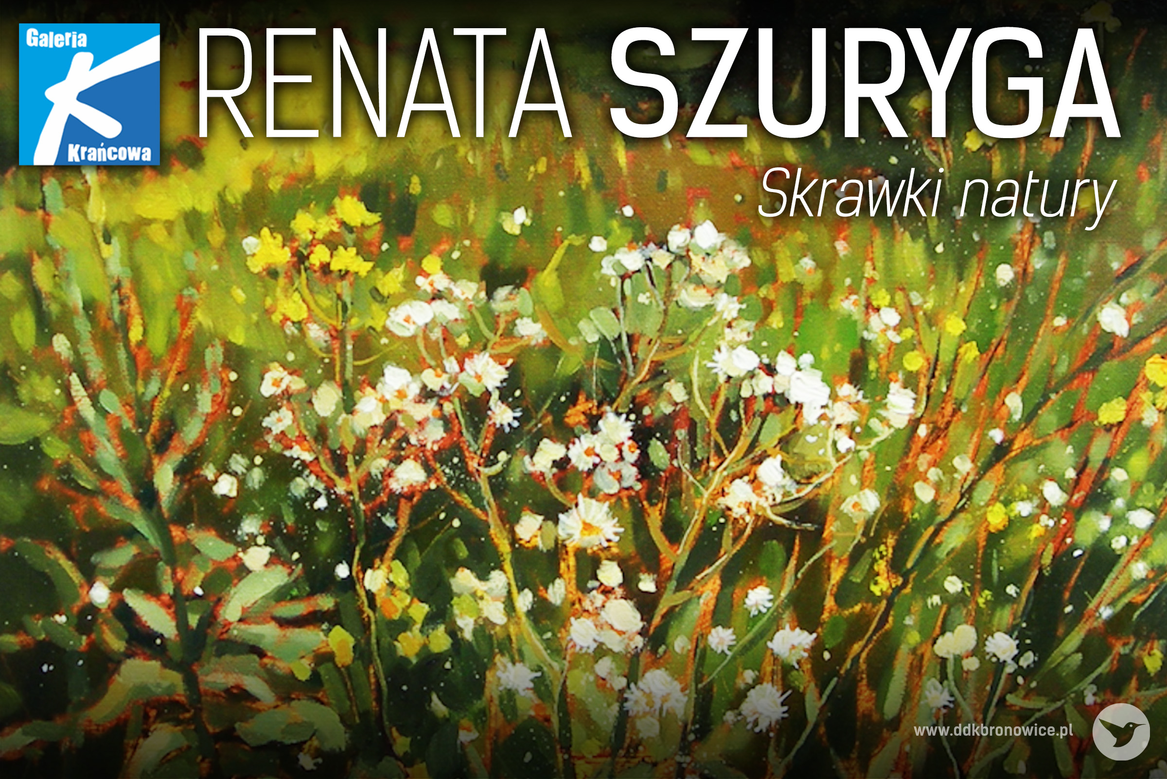 Zapraszamy do Galerii Krańcowej na wystawę malarstwa Renaty Szurygi , zatytułowaną “Skrawki natury”. Wernisaż wystawy odbędzie się 3 marca 2023 roku, o godzinie 18:00. Wystawę będzie można oglądać od 3 do 30 marca 2023 roku w Galerii Krańcowej. Renata Szuryga urodziła się w 1972 roku, w Świdniku. Jest absolwentką Państwowego Liceum Sztuk Plastycznych w Lublinie oraz studiów na Wydziale Artystycznym Uniwersytetu Marii Curie-Skłodowskiej w Lublinie, gdzie dyplom z malarstwa uzyskała w pracowni pro...