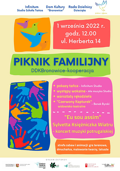 Przybywajcie tłumnie na plac przy ul. Herberta 14! Taneczne rytmy, radosna muzyka, dawka artystycznej energii oraz kreatywne warsztaty to najlepszy przepis na wejście z uśmiechem w rozpoczynający się nowy rok szkolny! Sprawmy, by cała dzielnica Dziesiąta w tym dniu rozbrzmiewała śmiechem i muzyką. Razem zaraźmy cały Lublin pozytywną energią i dobrą zabawą!