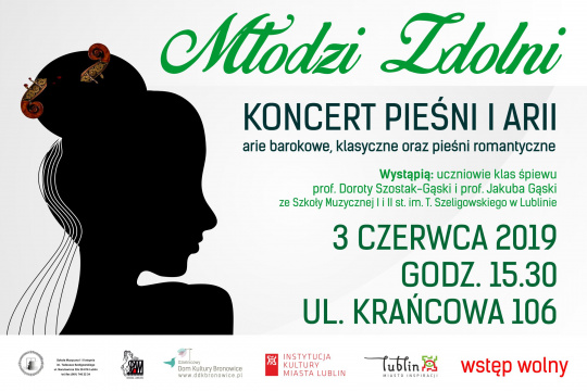 W poniedziałek, 3 czerwca 2019 r., o godzinie 15:30, młodzi artyści wystąpią w głównej siedzibie Dzielnicowego Domu Kultury "Bronowice", przy ul. Krańcowej 106, prezentując arie barokowe, klasyczne oraz pieśni romantyczne.