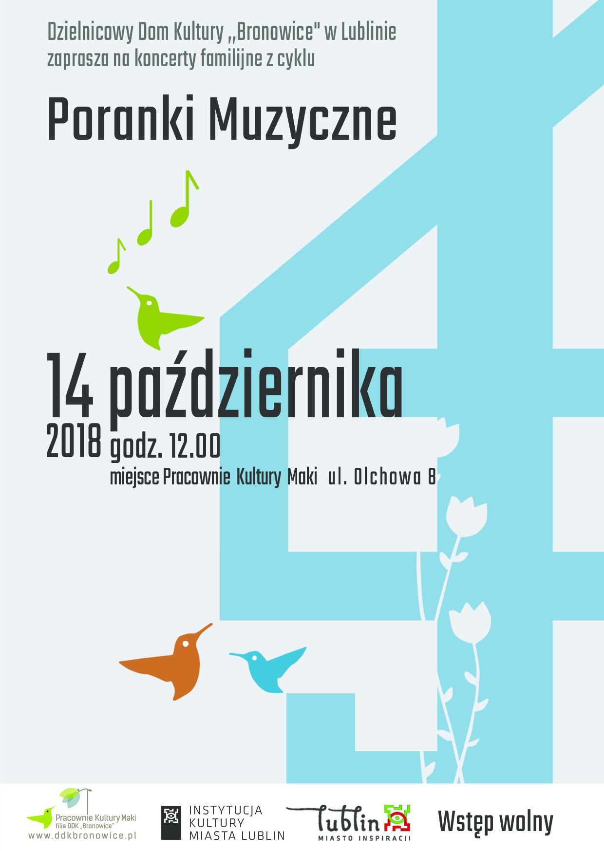 Poranki Muzyczne to familijne koncerty edukacyjne i forma obcowania z muzyką klasyczną dla widzów w każdym wieku, gdyż głęboko wierzymy, że na kontakt z wartościową muzyką nigdy nie jest za wcześnie! Podczas naszych niedzielnych spotkań, młodzi melomani wraz z rodzicami i dziadkami mają możliwość słuchania muzyki, a także aktywnego udziału w koncercie poprzez grę na instrumentach i wspólny śpiew. Spotkania przybliżają dzieciom świat dźwięków i prezentują bogate instrumentarium. Jest to projekt, który istnieje na muzycznej mapie Lublina już od prawie dziesięciu lat. Dzięki naszym koncertom muzykę klasyczną kocha i poznaje coraz więcej dzieci, a przez te lata na naszej scenie pojawiły się niemal wszystkie grupy instrumentów, zespoły, wokaliści, chóry, aktorzy, żywiołowi tancerze i balet.