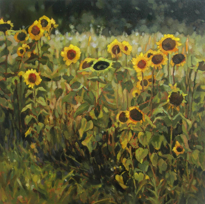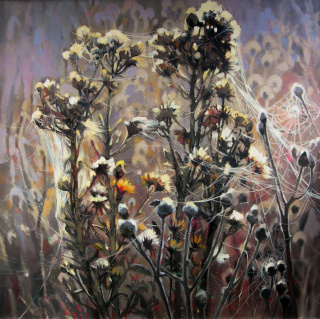Artystka uprawia malarstwo, którego tematyką są motywy roślinne oraz pejzaż ujęty w sposób przypominający nieco technikę witrażu. Prezentowane w trakcie wystawy obrazy ukazują fragmenty pejzażu. Skrawki tego, co mijamy, wyjeżdżając poza miasto: łąki, makowe pola, osty i inne malowane naturą, wypierane przez współczesność dzieła przyrody.
